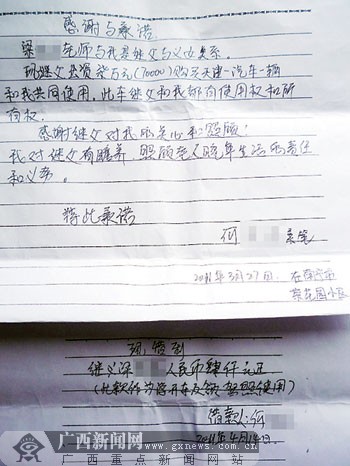 何某索要購車款時(shí)立下的“感謝與承諾”。