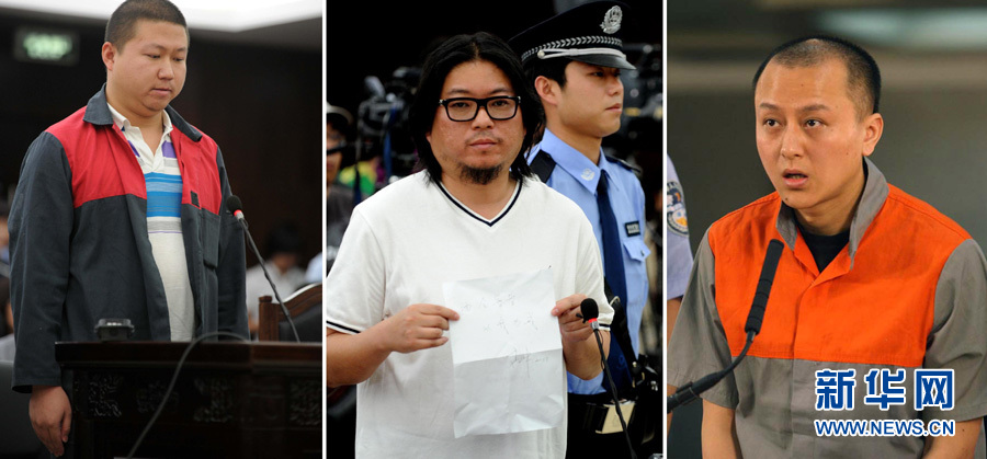 這張拼版照片顯示的是:5月17日,高曉松在法庭上展示懺悔書(shū)(中),北京“醉駕入刑”被查第一人李俊杰在法庭上(左),英菲尼迪車(chē)禍案被告人陳家(右)在庭審中。新華社記者公磊攝