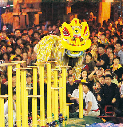 緬甸·仰光:唐人街1月24日舉行舞獅比賽。 吳 昂攝(新華社發)