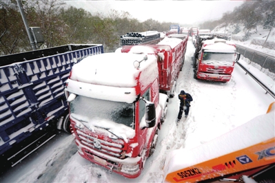 前晚7時(shí),近兩千人被困在八達(dá)嶺高速出京居庸關(guān)到水關(guān)長(zhǎng)城段。幾乎是同一時(shí)間,110國(guó)道昌平區(qū)和延慶縣交界處,至少1000輛車(chē)誤在風(fēng)雪里。