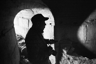 地道內一片漆黑,尹喜軍持手電探秘
