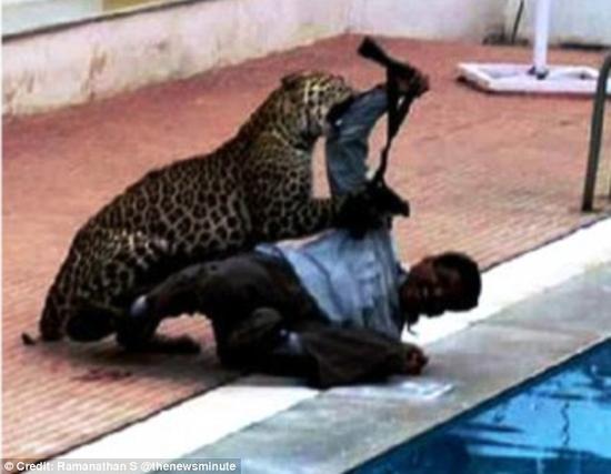 2016年2月8日報道,印度班加羅爾,一頭野生豹子突然奔入學校傷人,共有6人受不同程度傷害。其中一名動物學家遭到突然攻擊,該男子拿起望遠鏡搏斗這一瞬間被拍攝下來。
