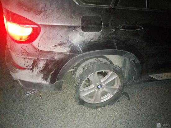 大年初四凌晨零點,浙江高速交警衢州支隊杭金衢高速窯上卡點大隊民警正在崗亭執勤,突然聽到江西方向開來一輛轎車發出疑似坦克聲音。執勤民警馬上指 揮車輛靠邊停下。走近一看被眼前看到一幕驚呆了,這輛浙J號牌的寶馬小車右后胎只剩下車轱轆,剛才發出坦克聲音就是鋁合金鋼圈摩擦地面發出的。