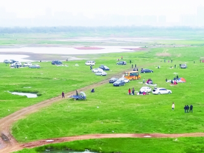 府河河灘常年綠草茵茵,其位于黃陂段府河大橋和盤龍大橋之間的河灘卻因踏青者將汽車開到河灘上,原本綠油油的草地出現(xiàn)一條條黃土路,大煞風景。
