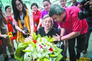 6月21日中午,飛越3000多公里,李淑榮老人從東北來到廣州,就是為了見73年未曾謀面的親姐姐。在廣州白云機場到達大廳,79歲的李淑榮艱難地從輪椅上起身,81歲的姐姐艾淑章放下拄著的拐杖。在眾人的簇擁中,兩位白發蒼蒼的老人還沒來得及開口,就相互攙扶著、緊緊相擁,姐妹深情化成一行清淚,欲語淚先流。