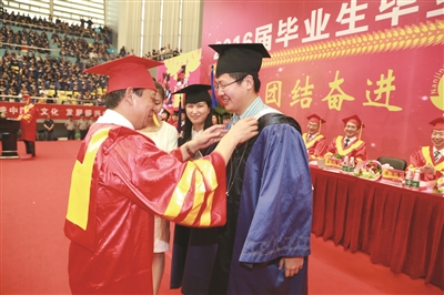 “哇!”“好羨慕!”“校長親自送戒指!”“人生贏家!”……昨天上午,在南京中醫藥大學2016屆畢業生畢業典禮暨學位授予儀式上,3640名本科生、研究生、留學生濟濟一堂。當碩士研究生、一對學霸情侶蔣日磊和李倩走上臺之后,現場一陣轟動,南中醫校長胡剛為他們送上特別的禮物——一對刻有姓名、學號的戒指。