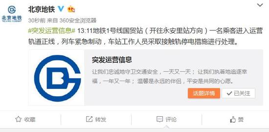 (原標(biāo)題:一名乘客進(jìn)入北京地鐵1號(hào)線運(yùn)營(yíng)軌道 列車緊急制動(dòng))