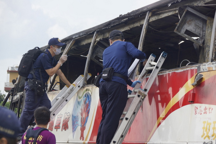 意外發生后,事故現場由警方進行戒護,19日晚間遺體移往殯儀館后,游覽車上的遺物及行李由警方進行清點,并移至桃園市政府存放。