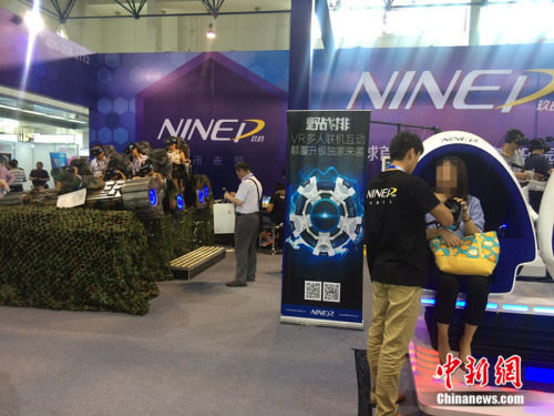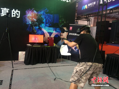 一名男子在玩VR相關槍戰游戲。中新網邱宇 攝