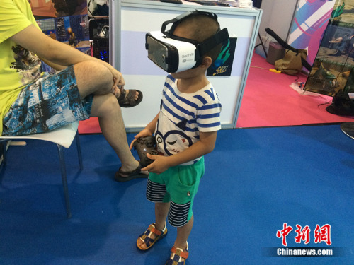 一名四歲兒童在體驗VR游戲。中新網邱宇 攝