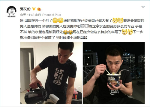 雖然男籃在本屆奧運上未嘗勝績,但球員們的心態還算平穩。北京時間12日中午,郭艾倫在微博中曬出自己吃方便面的照片,“出國在外一個月,逼的我現在已經會自己做大餐了。”照片中,郭艾倫手持水壺正在泡面,“都說會做飯的男人是最帥的,會做面的男人應該更帥吧!看這拿水壺的姿勢多么的專業手穩不抖,填的水量也是恰到好處。現在已經會做這么復雜的料理了,下一步就準備回國開個餐館了,到時候捧個場啊!”