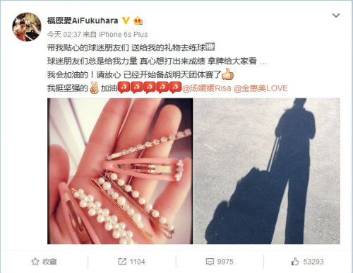 來自日本的乒乓球運動員在本屆奧運的關注也非常高,在輸給朝鮮選手后,小愛收到了球迷們送上的禮物——發卡。愛哭鬼福原愛曬出了少女心慢慢的禮物,并表示“帶我貼心的球迷朋友們送給我的禮物去練球,球迷朋友們總是給我力量,真心想打出來成績,拿牌給大家看…我會加油的!請放心,已經開始備戰明天團體賽了,我挺堅強的,加油!”