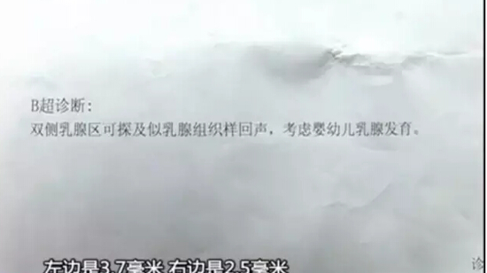 廣東電視臺公共頻道《DV現場》8月15日報道:今日接到韶關湞江區犁市鎮的街坊李女士爆料,說她三個多月大的女寶寶,胸部摸上去有硬塊,去醫院照b超,還被告知乳腺有早發育的跡象。三個月大就出現性早熟嗎?究竟是什么問題造成呢?