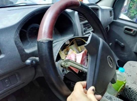 記者:偷來的錢不是都養家了,怎么還藏在方向盤蓋里?