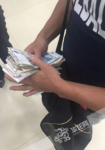 男子將零錢存銀行,柜員清點時他竟然睡著了。沙坪壩警方供圖