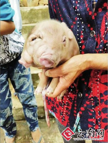 “母豬產下了9頭崽,其他的都正常,唯獨這頭有兩個腦袋四只眼睛。”劉翠芬說,這件事情馬上就在全村傳開了,大家都跑來圍觀。