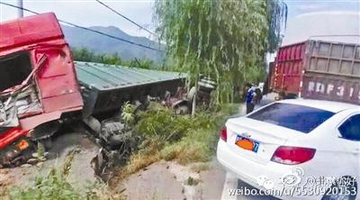 8月20日上午11時(shí)許,平谷區(qū)密三路東山下村前,發(fā)生兩貨車相剮撞事故,導(dǎo)致一貨車失控向道路南側(cè)側(cè)翻,將路南側(cè)果園前行人撞倒。北京青年報(bào)記者了解到,在這起1死3傷的事故中,演員李琦和劉金山也經(jīng)歷了驚魂一刻。據(jù)目擊者稱,事發(fā)時(shí)包括兩人在內(nèi)的一行人恰好在路邊,拉沙土的大貨車將3人埋住,劉金山一度呈“昏迷”狀態(tài),李琦并無大礙。