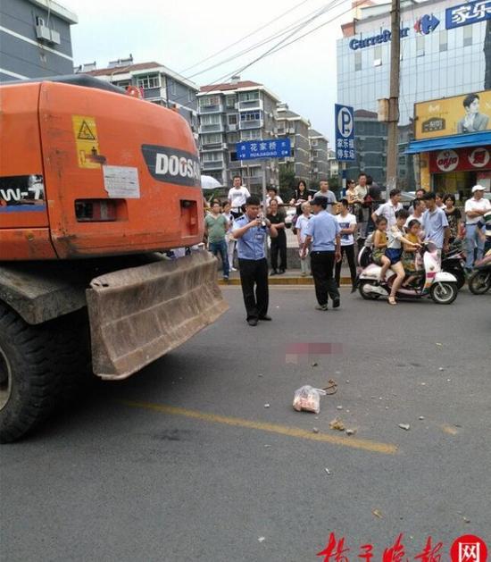 原標(biāo)題:無(wú)牌挖掘機(jī)開(kāi)上街 路口轉(zhuǎn)彎將行人碾壓致死