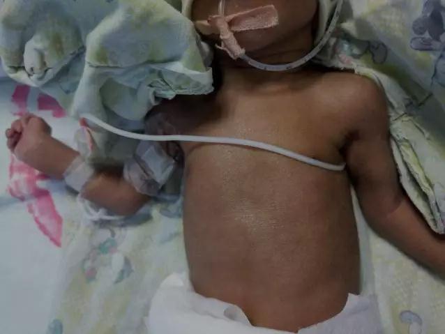 7月初,在福州市第一醫院,產婦阿玲(化名)早產,懷孕僅33周,她就誕下了小黑,當時,小黑重度窒息,醫生緊急搶救后,他立即被轉送到新生兒科繼續治療,戴上了呼吸機。醫生發現,小黑很瘦弱,軀干只有成人的巴掌大,且全身黑得像包公,尤其是顴骨、頸部、手肘、關節等皮膚更黑,連指甲都是黑的,更奇怪的是,他的陰莖僅1厘米長,縮成一團,黑得跟炭一樣。