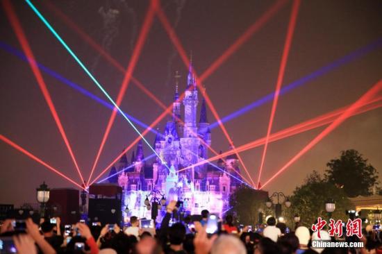 資料圖:6月16日晚,美輪美奐的燈光煙花秀讓上海迪士尼城堡變得幻彩無比,成當日上海迪士尼開園最華美絢麗的表演之一,吸引數萬游客觀賞。中新社記者 潘索菲 攝