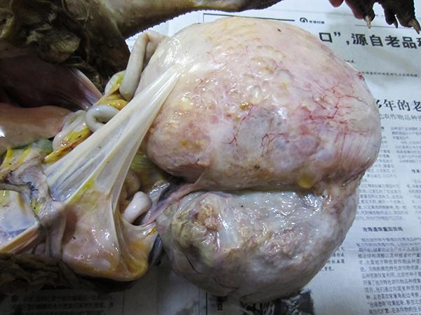 雞剖腹后發(fā)現(xiàn)的異物。(李永輝 攝)