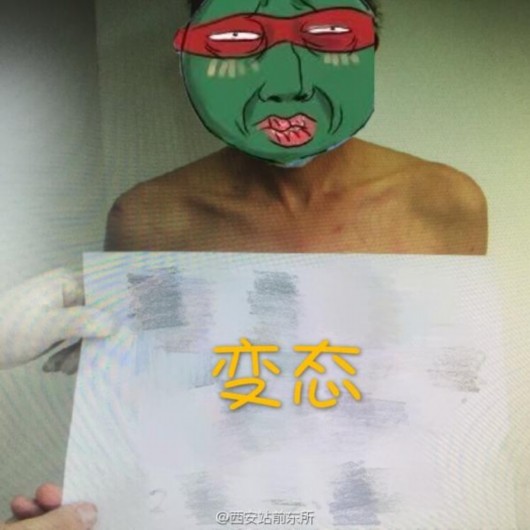 原標題:陜西一半裸男廣場猥褻女童被拘,警方配圖稱其“變態”被贊