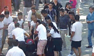 家屬與醫(yī)院保安起沖突時(shí)有人倒地。視頻截圖
