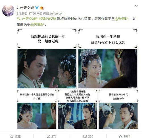 《九州天空城》則因劇中人物名稱引發(fā)爭議,有網(wǎng)友表示,“風(fēng)天逸,易茯苓、雪飛霜聽起來好像化妝品”、“這名字太文藝了吧”。同時,劇中“你若是能笑一笑,定叫做這滿山的茶花都盡失了顏色”的臺詞也被網(wǎng)友吐槽“瓊瑤風(fēng)”太明顯。