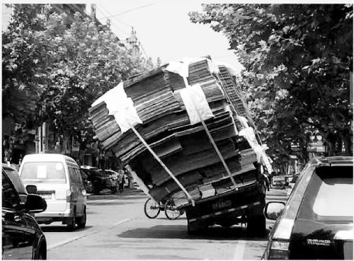 8月27日,在浙江省金華市街頭,筆者看到一輛嚴重超載的三輪車。車上的貨物已經嚴重傾斜,眼看車就要被壓翻了。這樣還敢上路,駕駛員的心理素質很強大,但交通安全意識未免太過薄弱。