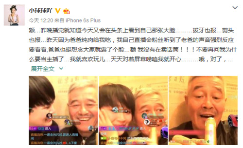 妞妞發(fā)文稱:“昨天因為爸爸燉肉給我吃,我自己直播會粉絲聽到了老爸的聲音強(qiáng)烈反應(yīng)要看看,爸爸也挺想念大家就露了個臉……”