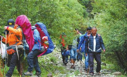2日上午10時許,6名驢友隨救援隊返回四姑娘山鎮。據救援隊員報告,2日凌晨2點30分,一梯隊在海子溝大黃棚子找到6名驢友。