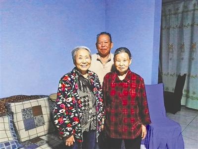8月29日,尹興珍(前左)與成圣金(后)及其老伴合影 受訪者供圖