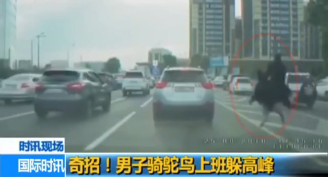 每每到了上下班巔峰時刻,司機們都得忍受十幾分鐘前進不了幾百公尺的塞車時段,總是磨掉不少人的耐心。哈薩克斯坦日前出現了一幕讓所有不耐煩的司機爆笑的 場面。通過視頻可以看到,在幾乎動彈不得的車陣中,行車記錄儀車主的右手邊突然沖出了一名騎著鴕鳥的男子,就這樣高速穿梭在車陣中,讓所有司機當場看傻眼。行車記錄儀車主則忍不住當場爆笑出來。