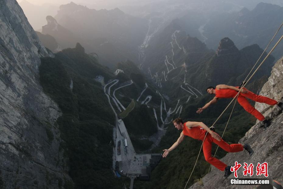 連日來,美國BANDALOOP高空舞團(tuán)在湖南張家界天門山景區(qū)上演了一場(chǎng)場(chǎng)優(yōu)雅而驚險(xiǎn)的懸崖舞蹈秀,過往游客被深深吸引,驚嘆不已。此次表演以“翩躚云界、極限飛天”為藝術(shù)主題,舞者通過優(yōu)雅而又驚險(xiǎn)的舞姿,與鬼斧神工般自然奇景進(jìn)行互動(dòng),闡述舞蹈與自然的關(guān)系,使舞蹈藝術(shù)盛放云端。9月13日,該舞團(tuán)將在天門山的天門洞景點(diǎn)帶來正式演出。James adamson 攝