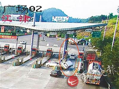 8 月25日凌晨,民警接到線索,嫌疑車輛再次出現。民警馬上在渝瀘高速江津沿線進行蹲守。早上7時42分許,嫌疑車輛緩緩駛入渝瀘高速G93江津收費站,埋 伏在收費亭內的民警,試圖在嫌疑人停車繳費時將其控制。不料對方見勢不妙,啟動車輛準備沖卡逃跑。這時,另一隊蹲守在收費站外的民警立即將警車開到前方, 把嫌疑車輛堵在收費車道內。嫌疑人駕車對警車進行多次強烈撞擊,企圖撞開警車后逃竄,但均未得逞。隨后,嫌疑人又猛烈倒車,企圖撞開后方社會車輛。