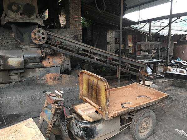 9月4日,涉事的盛恒磚廠的一輛從磚窯往外地面拉磚的磚車和停轉的機器。