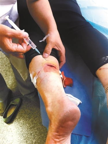 劉女士稱,自己在萬豪國際公寓內給一戶人家照看孩子,平時住在雇主家。事發時,劉女士在外面辦完事準備進小區,突然一只白色的狗沖過來,咬住她的左腿,“它隔著褲子咬我的腿,我用傘一直打它才把它趕走。”劉女士說,當時自己流了很多血,后來雇主家的司機把她送到疾控中心打針。