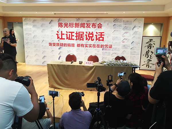 原標題:陳光標南京發布會回應詐捐