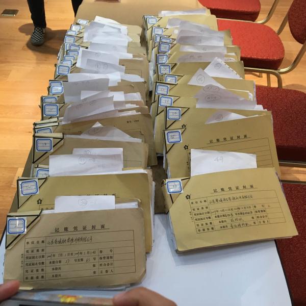 陳光標正在回應公司副總蔣勇偽造公章一事,并展示了陳光標的報案紀錄,還展示了對該案的立案通知書。陳光標指責公司總經理張宏德背信棄義,與副總蔣勇在外成立其他公司,私刻公章,套取公司利益。