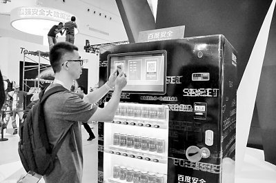 在宣傳周網絡安全博覽會現場,一名參觀者拿出智能手機體驗網絡安全新產品。光明網記者 李政葳攝/光明圖片