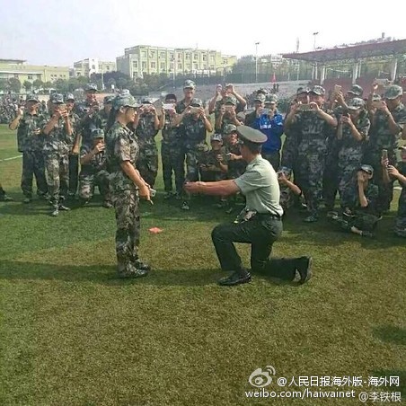 [山東高校多名教官向大一女生表白 或摟肩膀或當眾親吻]9月23日,青島理工大學臨沂校區(qū)舉行新生軍訓(xùn)總結(jié)大會,軍訓(xùn)教官被曝向大一女生公開表白,有教官單膝跪地,有的手捧鮮花表白,也有的摟住女生的肩部走在校園或親吻女生的臉。據(jù)了解,有的表白被婉拒,有的成功了……