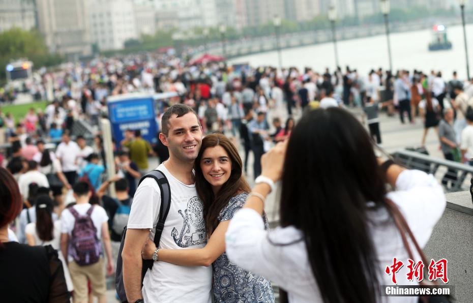 10月3日,上海各景點迎來大客流,作為上海地標的外灘更是游客如潮。 中新社記者 湯彥俊 攝