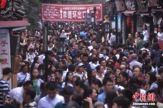 資料圖:10月7日,國慶長假最后一天,重慶磁器口古鎮游客依然“爆棚”。 陳超 攝
