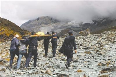 民警四人一組輪流抬擔架 徒步20公里轉移驢友遺體