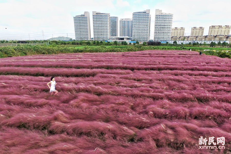 近日,上海松江廣富林路上有一片“粉色花!,花海主體為粉黛亂子草,面積約60畝,單獨一株粉黛亂子草并不起眼,可一旦連成片,就如同粉色云霧一般,遠遠望去,宛如仙境。新民晚報 張龍 攝