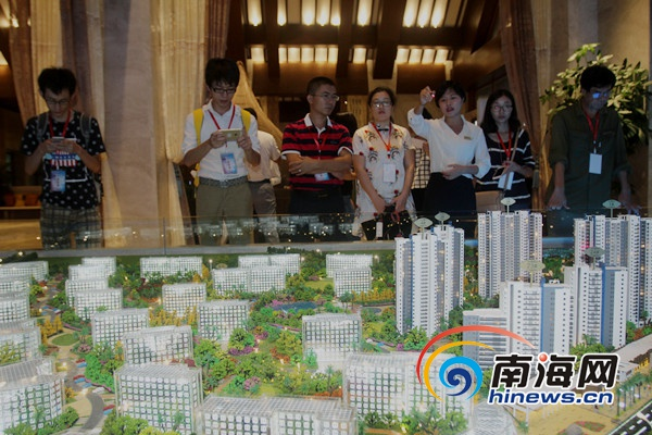 文昌高龍灣1號的工作人員向網媒記者介紹該地產樓盤項目。 南海網記者陳望 攝