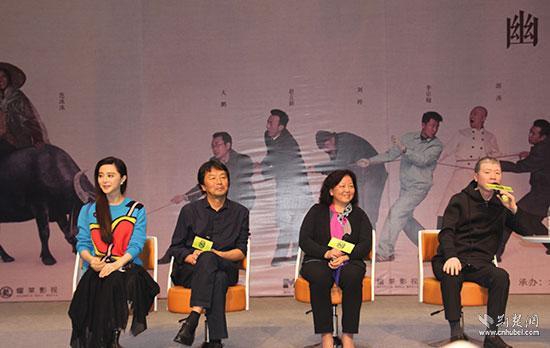 隨后,在主持人的引導(dǎo)下,電影《我不是潘金蓮》導(dǎo)演馮小剛、原著劉震云、湖北省作家協(xié)會(huì)主席方方現(xiàn)身活動(dòng)現(xiàn)場。此時(shí),不少學(xué)生議論起范冰冰真的不會(huì)來了。