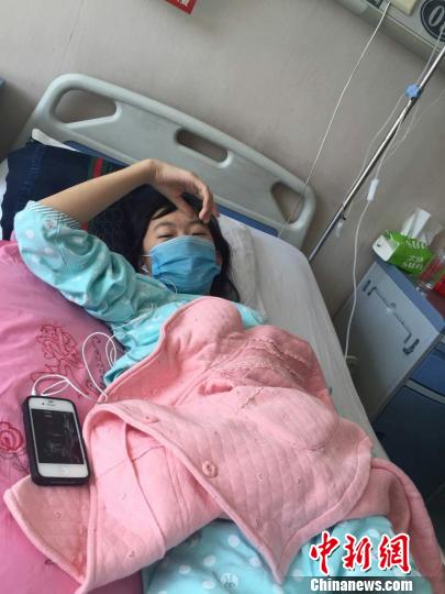 確診患有乳腺惡性腫瘤,雯靜在當地醫院接受第一周期化療。 沈國蓉供圖 攝