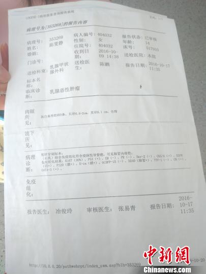 雯靜的診斷結果上赫然寫著:乳腺惡性腫瘤。 佘麗莎 攝