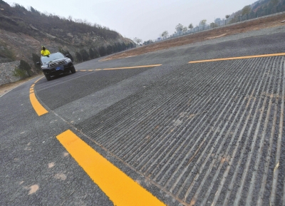 記者觀察發現,近4米寬的路面有3米都布設著溝槽,而這些溝槽就是這條道路會唱歌的秘密所在。